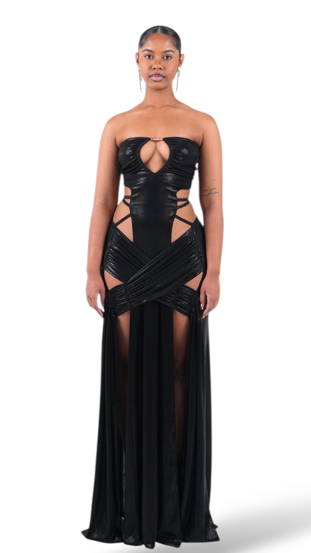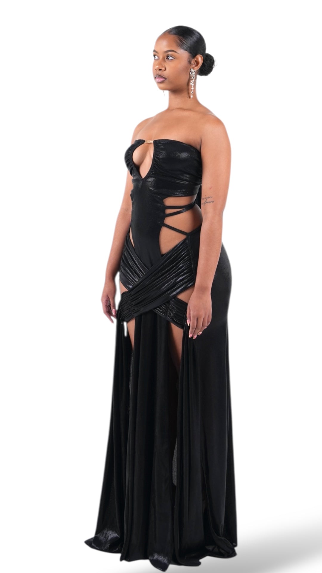 Alexis combines our Signature J.Angelique draping with sexy cut outs and our New J.Angelique Golden tag.