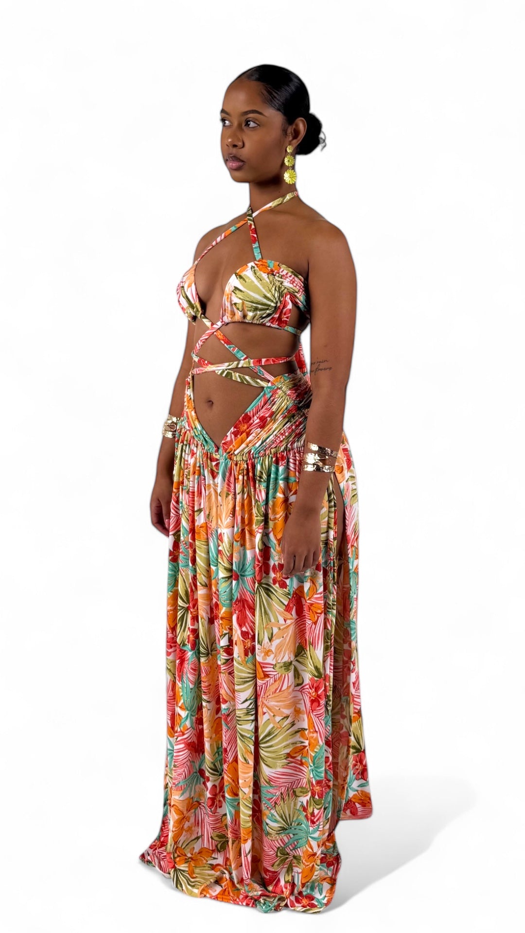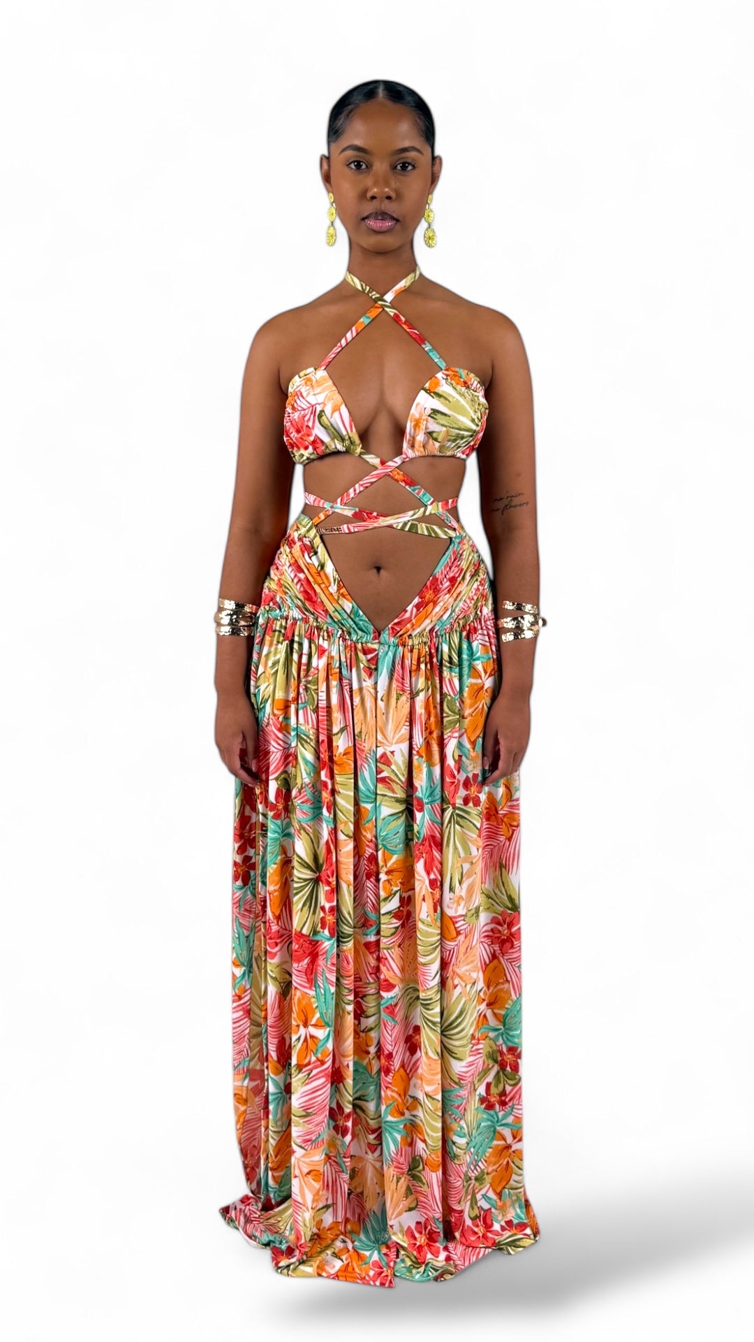Nalu; the Hawaiian word for wave embodies the beauty and complexity of the sea. Nalu combines a ruched, drape skirt which enhances the curves of the body and ruched cropped top with cross cross style lines.