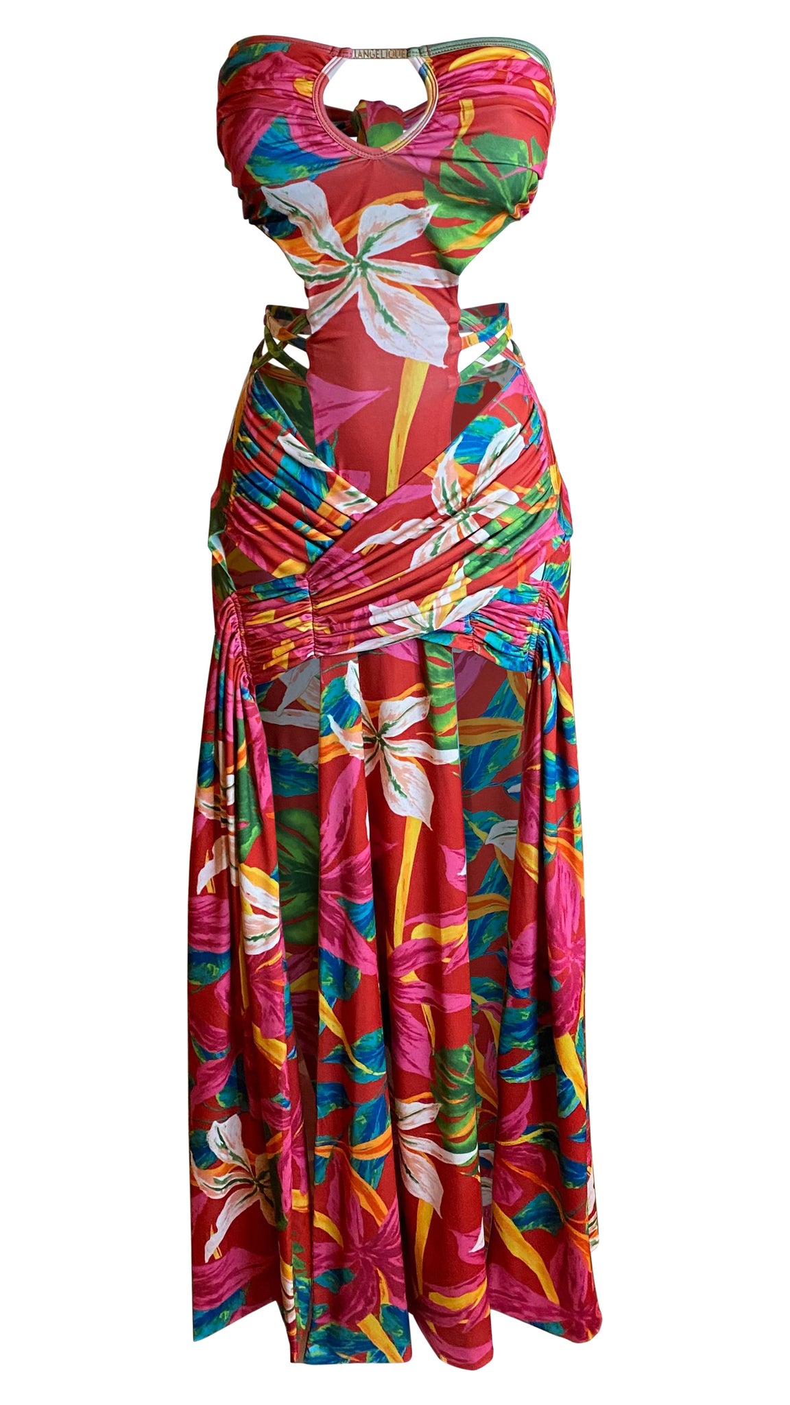 Alexis combines our Signature J.Angelique draping with sexy cut outs and our New J.Angelique Golden tag.