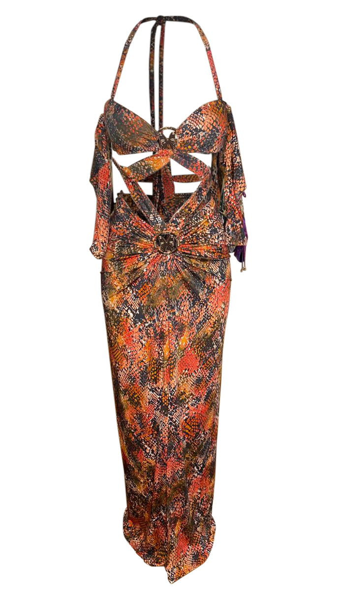Yasmin features sexy cutouts and our New Signature Gold Butterfly Motif. Optional peek-a-boo bra; may be full coverage.
