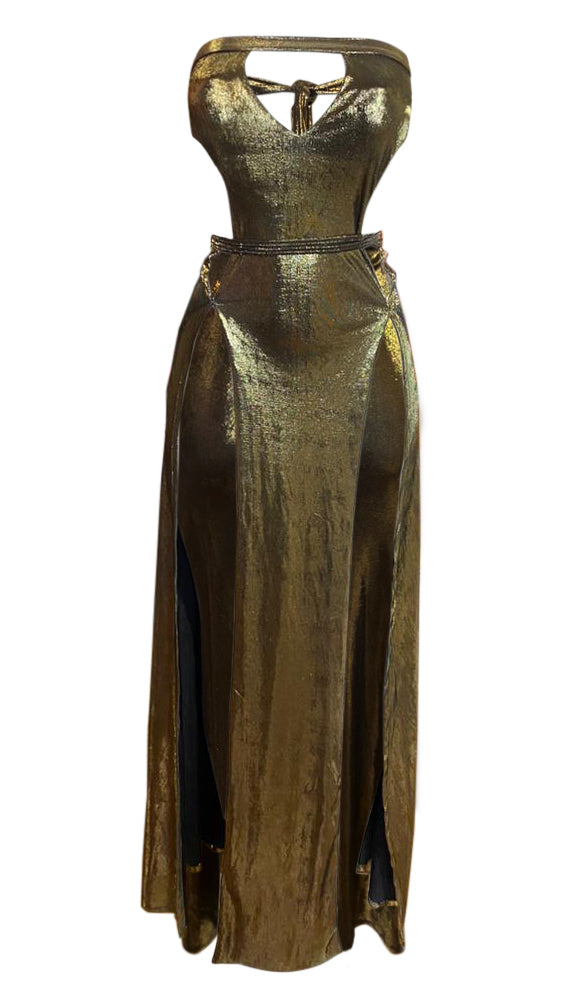 Zara brings the Glitz and the Glam to the Fête! Zara features a supportive strapless with sexy cuts and thigh high slits.