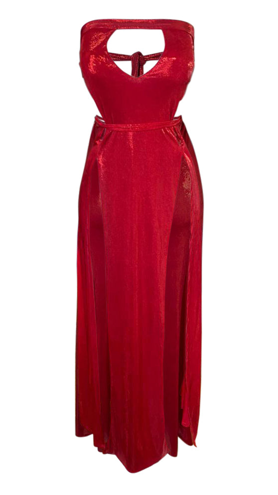 Zara brings the Glitz and the Glam to the Fête! Zara features a supportive strapless with sexy cuts and thigh high slits.